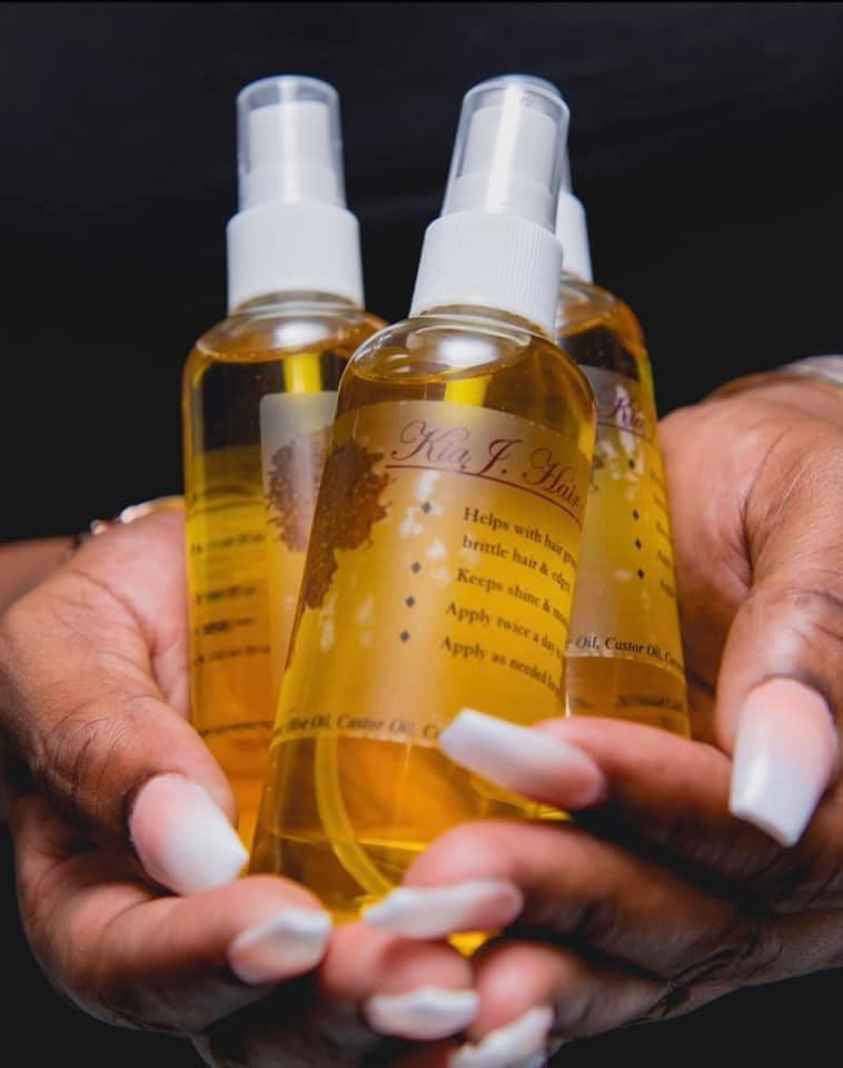 Hey, there my name is Kia J and I started my hair oil business in 2019. It all started in 2017 when I was diagnosed with Lupus. I decided to do the big chop and start fresh with my hair. As time went by I became inspired to create my own hair growth oil. Now finding a product to help with moisture, shine, and hair loss was a total mess. Nothing helped with my hair pattern type. It was really too coarse. I decided to put some very known products together that would help with all the hair problems that I was having. I used the mixture on my hair for a couple of weeks and saw a great difference. I decided to start using my hair growth oil on my clients hair and which they loved. People began to ask how could they purchase my hair oil. In 2019 I decided to take my hair growth oil even further by turning my passion into a business.